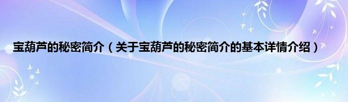 本文关于宝葫芦的秘密简介的基本详情介绍就讲解完毕,希望对大家有所帮助。