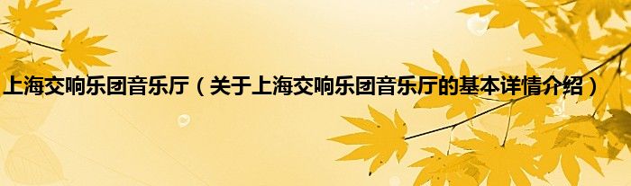 本文关于上海交响乐团音乐厅的基本详情介绍就讲解完毕,希望对大家有所帮助。