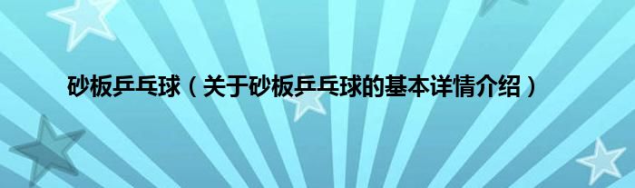 本文关于砂板乒乓球的基本详情介绍就讲解完毕,希望对大家有所帮助。