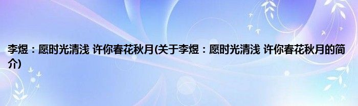 本文关于李煜:愿时光清浅,许你春花秋月的简介就讲解完毕,希望对大家有所帮助。