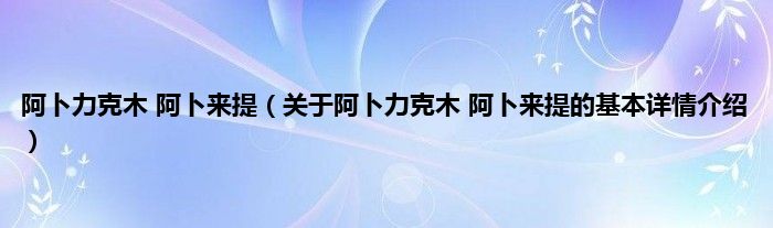 本文关于阿卜力克木 阿卜来提的基本详情介绍就讲解完毕,希望对大家有所帮助。