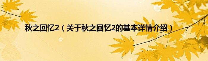 本文关于秋之回忆2的基本详情介绍就讲解完毕,希望对大家有所帮助。