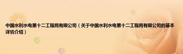 本文关于中国水利水电第十二工程局有限公司的基本详情介绍就讲解完毕,希望对大家有所帮助。