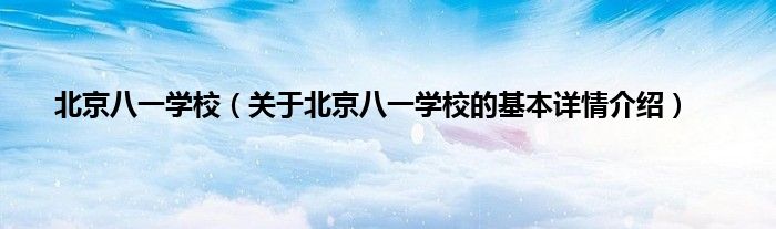 本文关于北京八一学校的基本详情介绍就讲解完毕,希望对大家有所帮助。