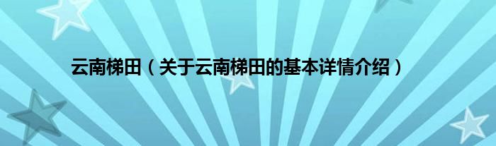 本文关于云南梯田的基本详情介绍就讲解完毕,希望对大家有所帮助。
