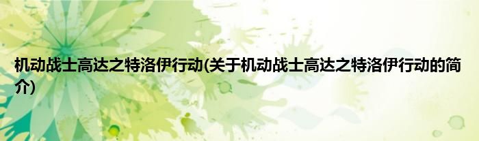 大家好,机动战士高达之特洛伊行动,关于机动战士高达之特洛伊行动的简介很多人还不知道,现在让我们一起来看看吧!