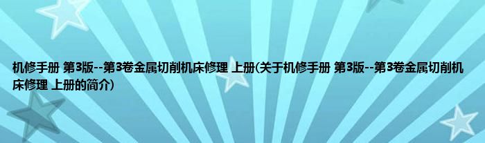 1、 《机修手册(第3版)--第3卷金属切削机床修理(上册)》是机械工业出版社出版的图书。