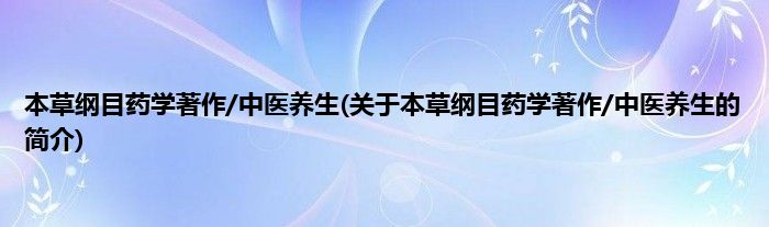大家好,本草纲目药学著作/中医养生,关于本草纲目药学著作/中医养生的简介很多人还不知道,现在让我们一起来看看吧!