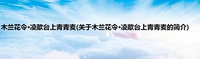 大家好,木兰花令·凌歊台上青青麦,关于木兰花令·凌歊台上青青麦的简介很多人还不知道,现在让我们一起来看看吧!