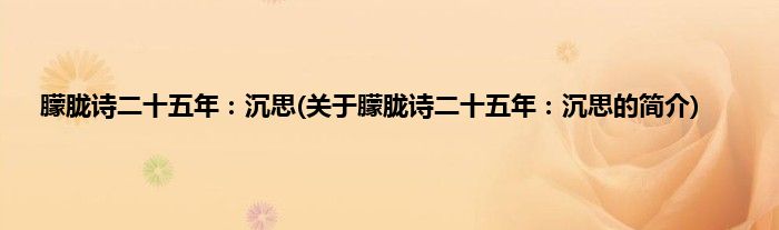朦胧诗二十五年:沉思(关于朦胧诗二十五年:沉思的简介)