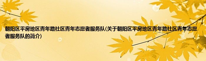 1、 朝阳区平房地区青年路社区青年志愿者服务队是由朝阳区平房地区青年志愿者服务队领导下的志愿团体。