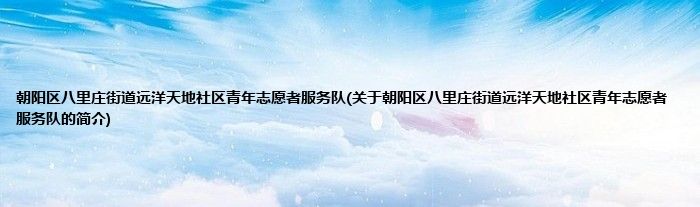 朝阳区八里庄街道远洋天地社区青年志愿者服务队(关于朝阳区八里庄街道远洋天地社区青...