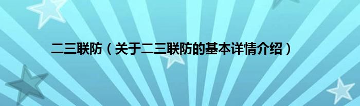 二三联防(关于二三联防的基本详情介绍)