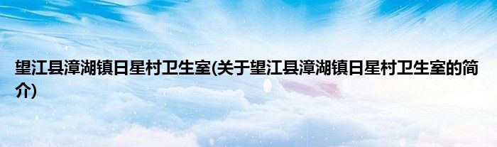 本文关于望江县漳湖镇日星村卫生室的简介就讲解完毕,希望对大家有所帮助。