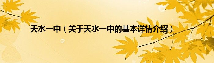 本文关于天水一中的基本详情介绍就讲解完毕,希望对大家有所帮助。