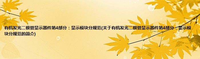 本文关于有机发光二极管显示器件第4部分:显示模块分规范的简介就讲解完毕,希望对大家有所帮助。