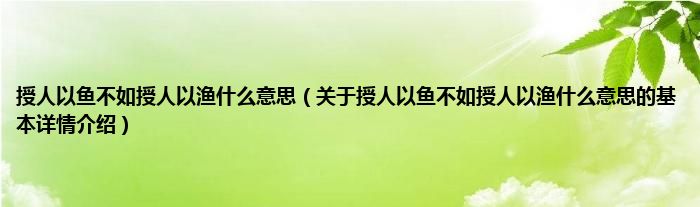 授人以鱼不如授人以渔什么意思(关于授人以鱼不如授人以渔什么意思的基本详情介绍)