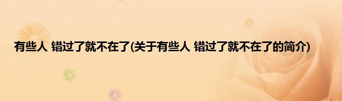 本文关于有些人,错过了就不在了的简介就讲解完毕,希望对大家有所帮助。
