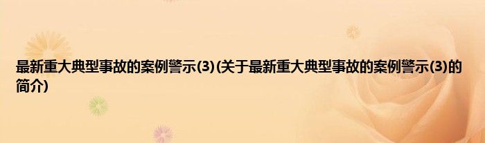 大家好,最新重大典型事故的案例警示,3,关于最新重大典型事故的案例警示,3的简介很多人还不知道,现在让我们一起来看看吧!