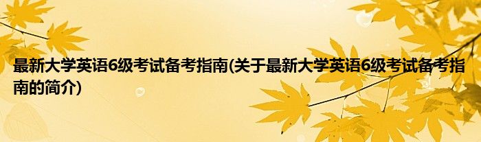 本文关于最新大学英语6级考试备考指南的简介就讲解完毕,希望对大家有所帮助。