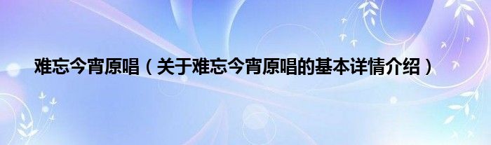 本文关于难忘今宵原唱的基本详情介绍就讲解完毕,希望对大家有所帮助。