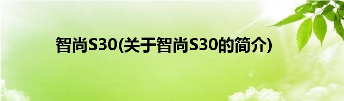 大家好,智尚S30,关于智尚S30的简介很多人还不知道,现在让我们一起来看看吧!