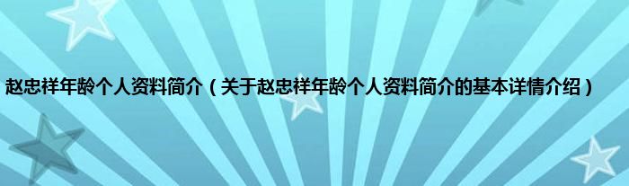 本文关于赵忠祥年龄个人资料简介的基本详情介绍就讲解完毕,希望对大家有所帮助。