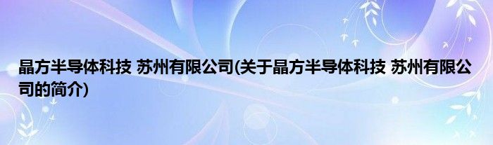 大家好,晶方半导体科技 苏州有限公司,关于晶方半导体科技 苏州有限公司的简介很多人还不知道,现在让我们一起来看看吧!