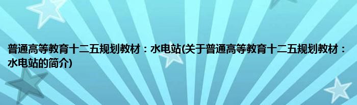 本文关于普通高等教育十二五规划教材:水电站的简介就讲解完毕,希望对大家有所帮助。