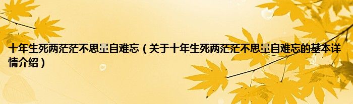 本文关于十年生死两茫茫不思量自难忘的基本详情介绍就讲解完毕,希望对大家有所帮助。