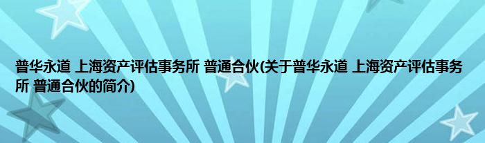 普华永道 上海资产评估事务所 普通合伙(关于普华永道 上海资产评估事务所 普通合伙的简介)