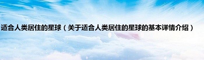 本文关于适合人类居住的星球的基本详情介绍就讲解完毕,希望对大家有所帮助。