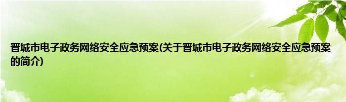 本文关于晋城市电子政务网络安全应急预案的简介就讲解完毕,希望对大家有所帮助。