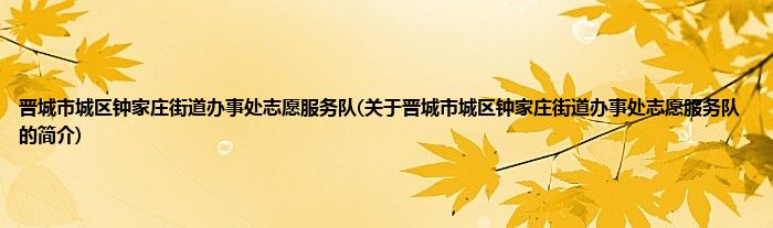 1、 晋城市城区钟家庄街道办事处志愿服务队是由晋城市城区志愿服务联合会领导下的志愿团体。