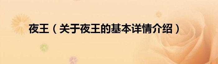 本文关于夜王的基本详情介绍就讲解完毕,希望对大家有所帮助。