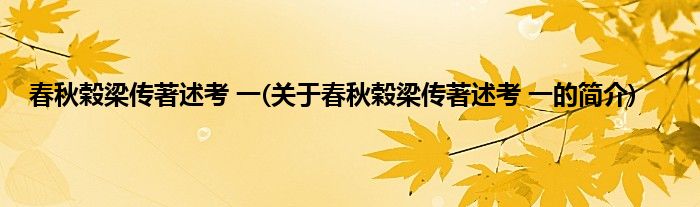 本文关于春秋榖梁传著述考 一的简介就讲解完毕,希望对大家有所帮助。