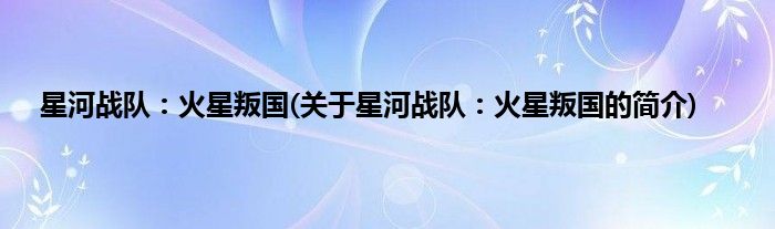 大家好,星河战队:火星叛国,关于星河战队:火星叛国的简介很多人还不知道,现在让我们一起来看看吧!