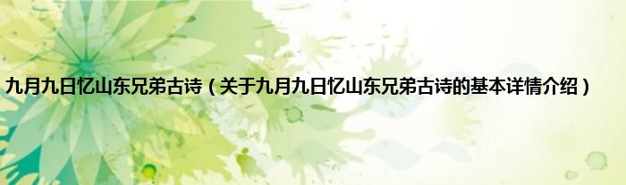 本文关于九月九日忆山东兄弟古诗的基本详情介绍就讲解完毕,希望对大家有所帮助。