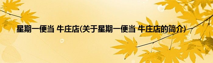 1、 星期一便当(牛庄店)是一家快餐店。
