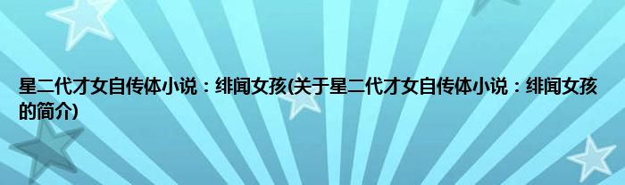 1、 《星二代才女自传体小说:绯闻女孩》是新浪读书连载的都市小说。