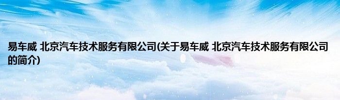 本文关于易车威 北京汽车技术服务有限公司的简介就讲解完毕,希望对大家有所帮助。