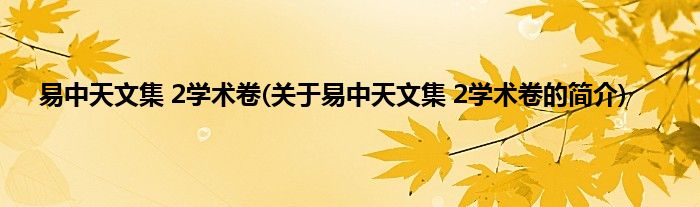 大家好,易中天文集 2学术卷,关于易中天文集 2学术卷的简介很多人还不知道,现在让我们一起来看看吧!