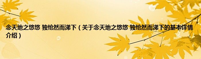 本文关于念天地之悠悠 独怆然而涕下的基本详情介绍就讲解完毕,希望对大家有所帮助。