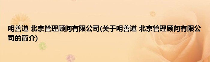 本文关于明善道 北京管理顾问有限公司的简介就讲解完毕,希望对大家有所帮助。