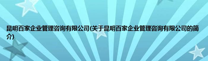 本文关于昆明百家企业管理咨询有限公司的简介就讲解完毕,希望对大家有所帮助。