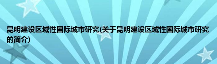 本文关于昆明建设区域性国际城市研究的简介就讲解完毕,希望对大家有所帮助。