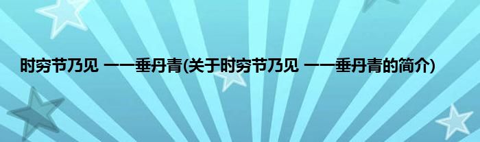 本文关于时穷节乃见,一一垂丹青的简介就讲解完毕,希望对大家有所帮助。