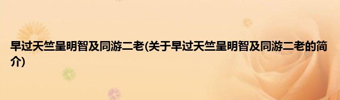 本文关于早过天竺呈明智及同游二老的简介就讲解完毕,希望对大家有所帮助。