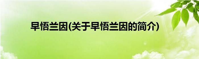 本文关于早悟兰因的简介就讲解完毕,希望对大家有所帮助。