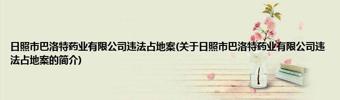 大家好,日照市巴洛特药业有限公司违法占地案,关于日照市巴洛特药业有限公司违法占地案的简介很多人还不知道,现在让我们一起来看看吧!